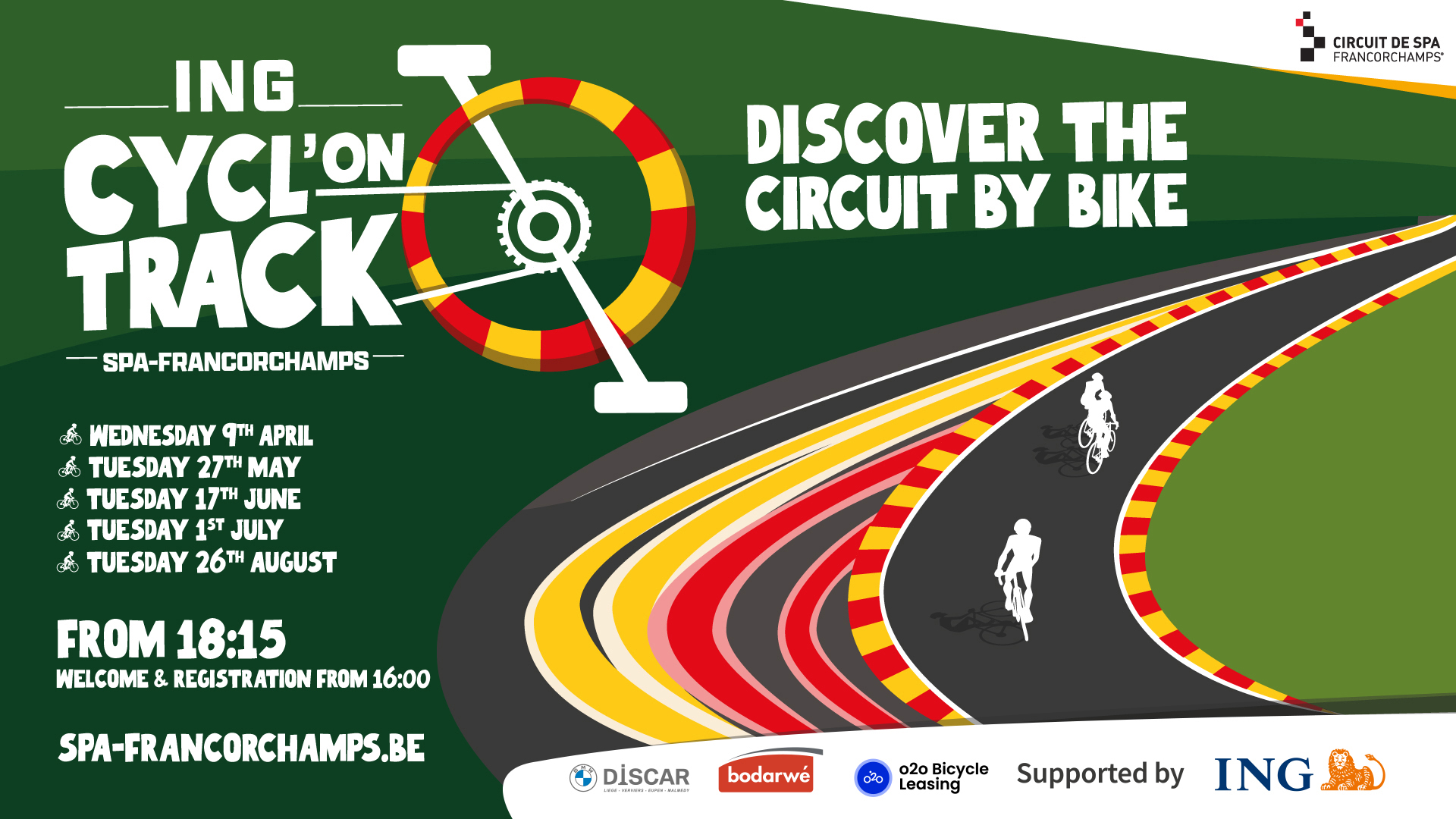De 18h15 jusqu’au coucher du soleil, venez vivre une expérience unique sur l’un des circuits les plus légendaires au monde ! Grimpez le Raidillon, dévalez le toboggan des Ardennes et roulez là où les plus grands pilotes ont fait l’histoire… mais à vélo !