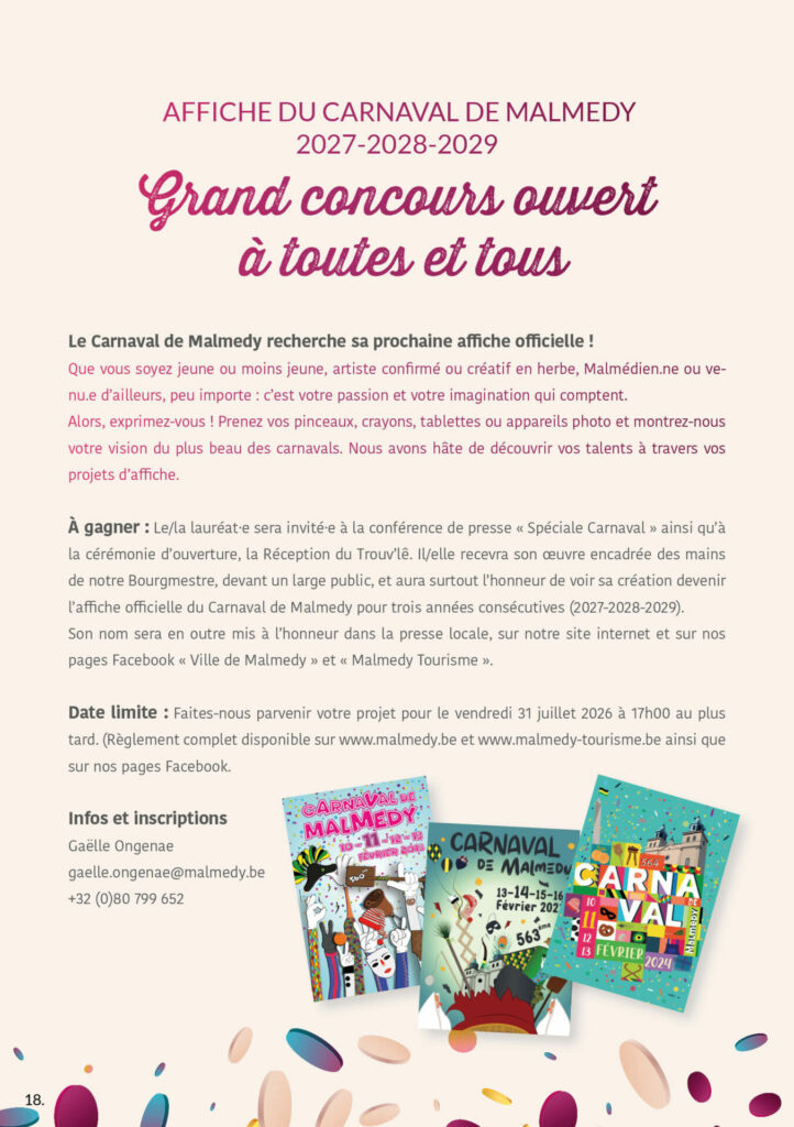 Trouvez ici le règlement complet : Règlement du concours « affiche du carnaval de malmedy 2027 – 2028 – 2029 »
